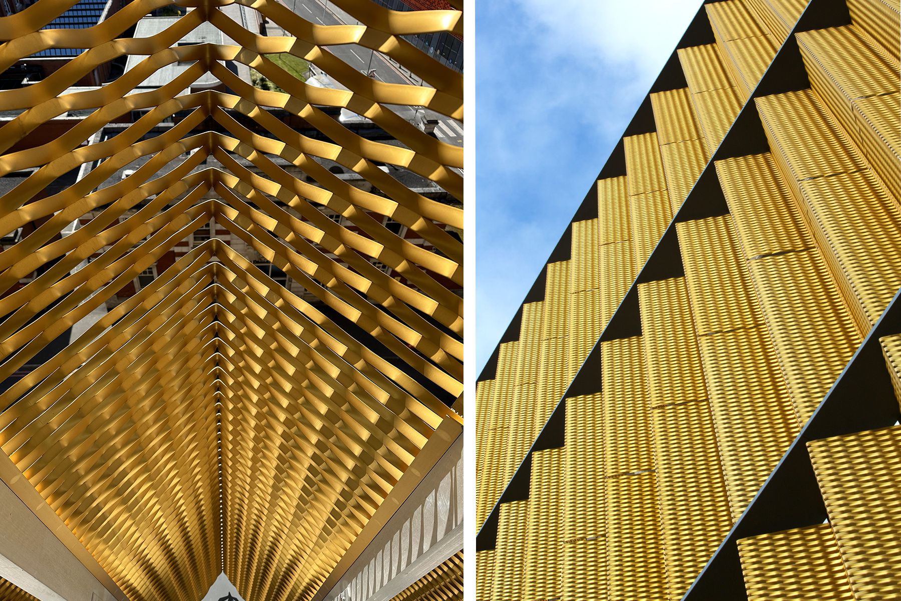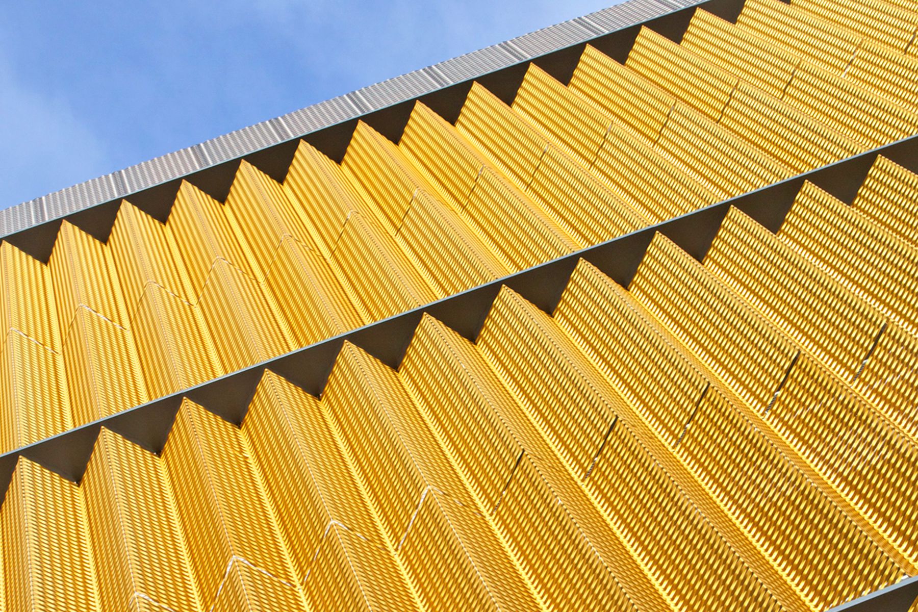 In collaborazione con lo studio di architettura “Sheppard Robson”, Aliva ha progettato una sorprendente facciata in lamiere stirate anodizzate oro, studiate per creare profondità e un forte impatto visivo, focalizzare l’attenzione dei milioni di visitatori del principale complesso ospedaliero di Manchester.